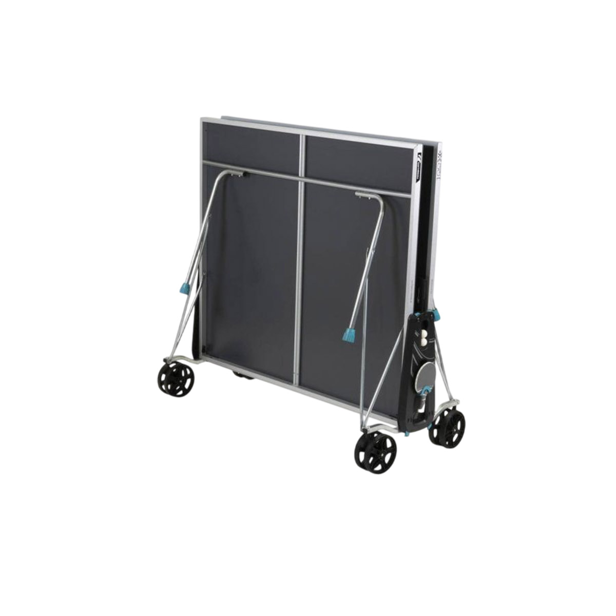 Affordable and yet well made, the 100X table enables as many people as possible to enjoy the pleasures of table tennis. It is compact, easy to move with its large wheels, simple and safe to store and handle, and also features storage options for balls and rackets.