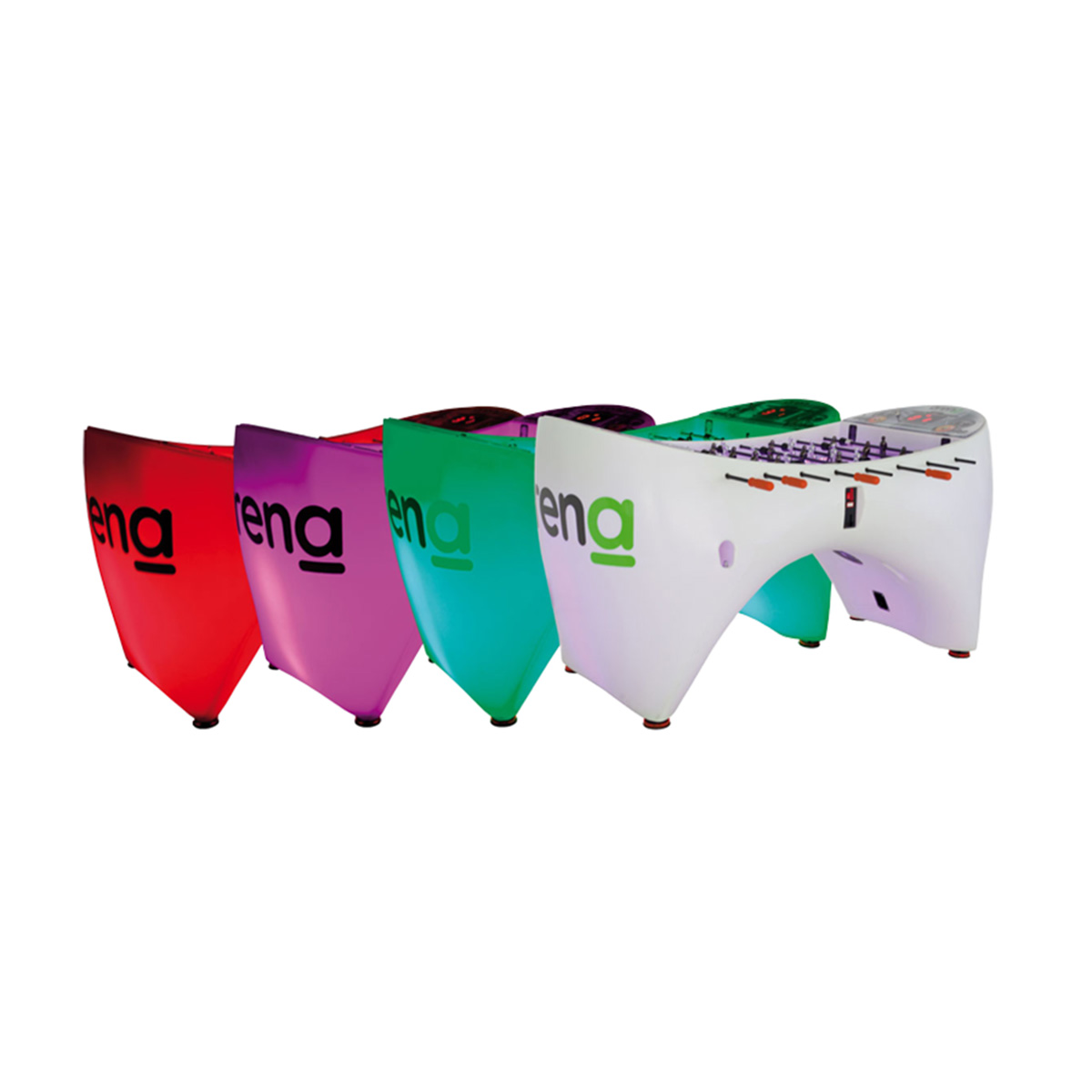 Built in a one-piece synthetic cabinet with four levelers for a perfect positioning, this electronic foosball table comes with LED lighting, passing rods and scoreboard on both sides. In addition, the aluminium designed players feature two legs for a precise, fast and fun game.