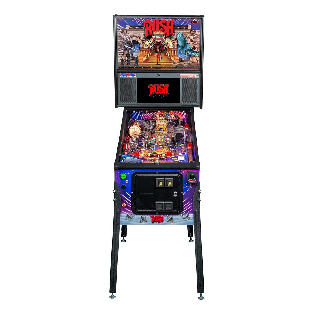 - Player selectable song choice of sixteen iconic Rush songs at the start of every ball
