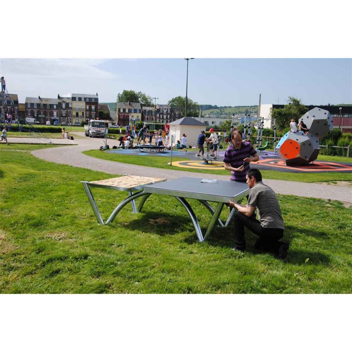 This is an optional accessory for use on the Cornilleau Outdoor PARK table tennis. The sand trays can be inserted under the playing surface and filled with sand to increase the overall weight of the table (up to 362 kg).