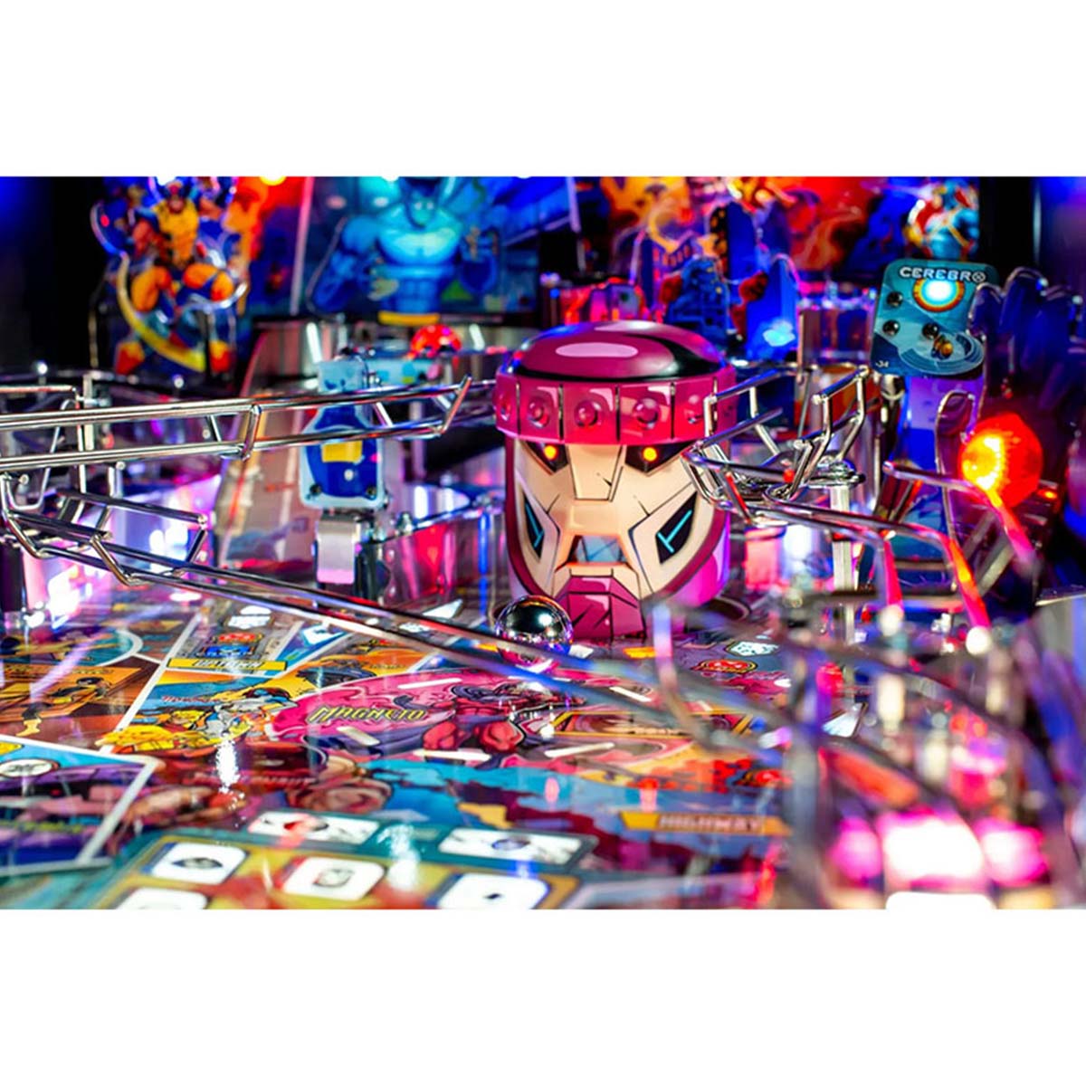 Stern’s latest The Uncanny X-Men pinball machines showcase iconic characters like Wolverine, Professor X, Cyclops, Storm, Colossus, Beast, Rogue, Gambit, Nightcrawler, Jean Grey, Bishop, Kitty Pryde, and Magneto, accompanied by a cast of allies and enemies. Players embark on an adventure through well-known X-Men settings, such as the Danger Room, Beast’s Lab, the X-Mansion, and Genosha. As they progress, they’ll encounter legendary X-Men gadgets like Cerebro and the X-Jet.